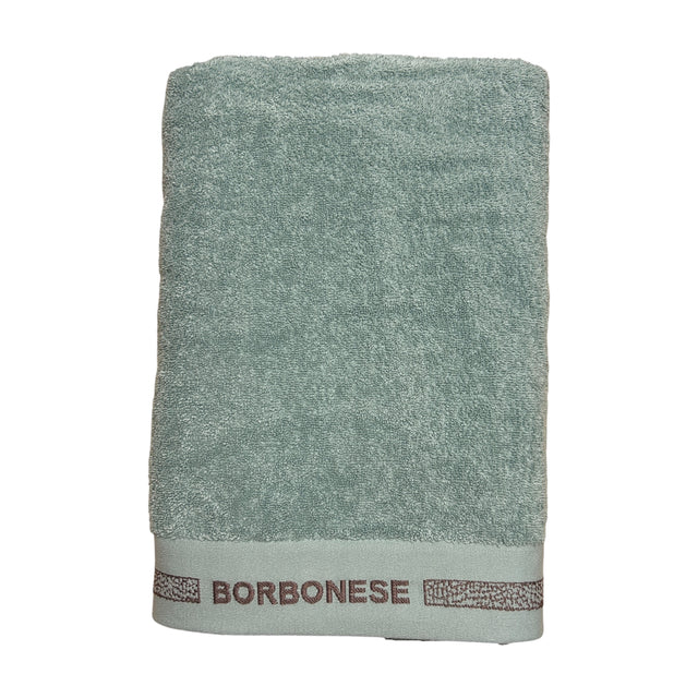 Telo doccia Borbonese realizzato in spugna 100% cotone da 480 gr/mq, morbida e altamente assorbente. Impreziosito da una raffinata bordura in tessuto liscio con logo Borbonese ricamato, unisce eleganza e qualità per l’uso quotidiano. Dimensioni 100 x 150 cm, ideale per avvolgere il corpo con comfort e stile.