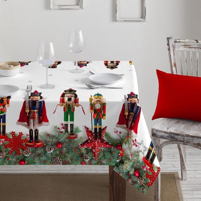 Tovaglia arredo in puro cotone 100% con stampa digitale piazzata e disegno esclusivo a tema natalizio.