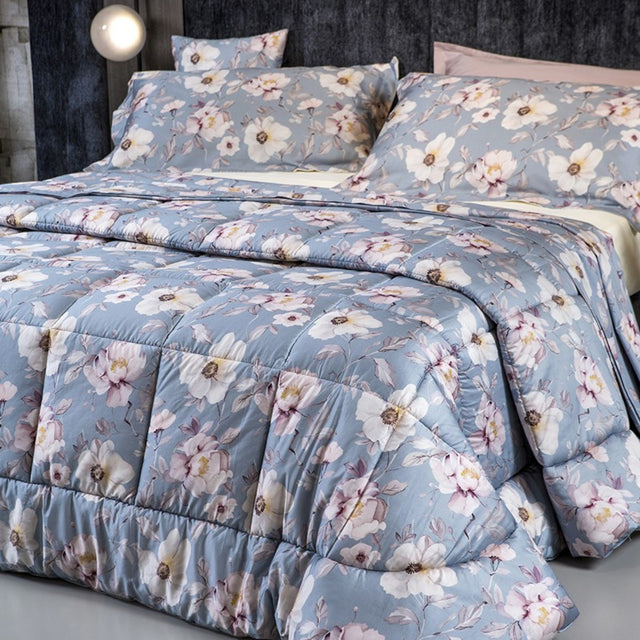 Trapunta in pregiato raso satin 100% 300 TC stampa digitale disegno floreale.