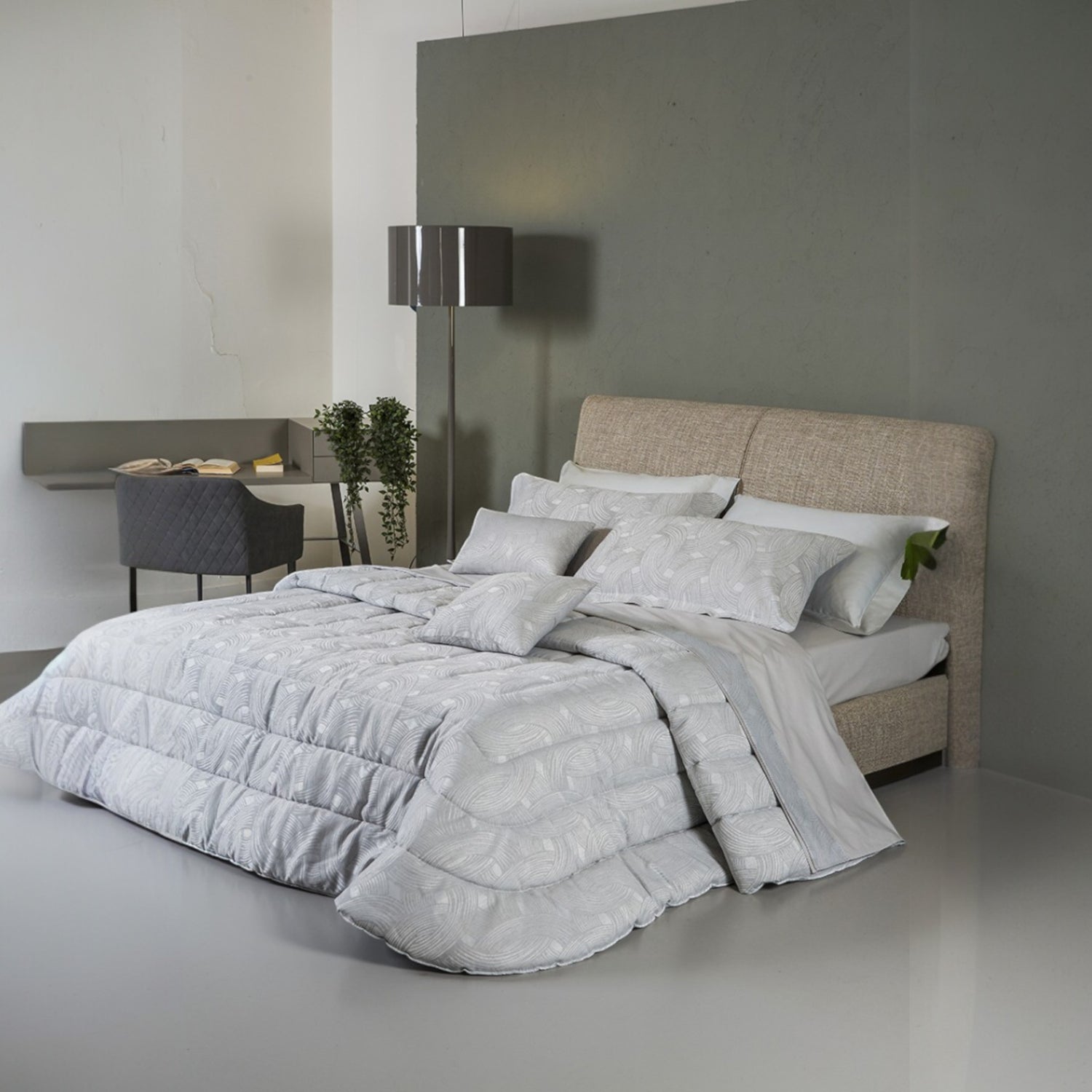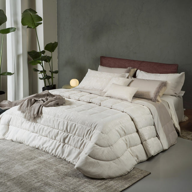 Trapunta in tessuto jacquard Eco Green, realizzato artigianalmente garantendo standard di sostenibilità ambientale.