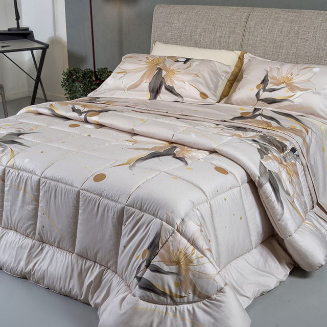 Trapunta in pregiato raso satin 100% 300 TC stampa digitale disegno esclusivo.