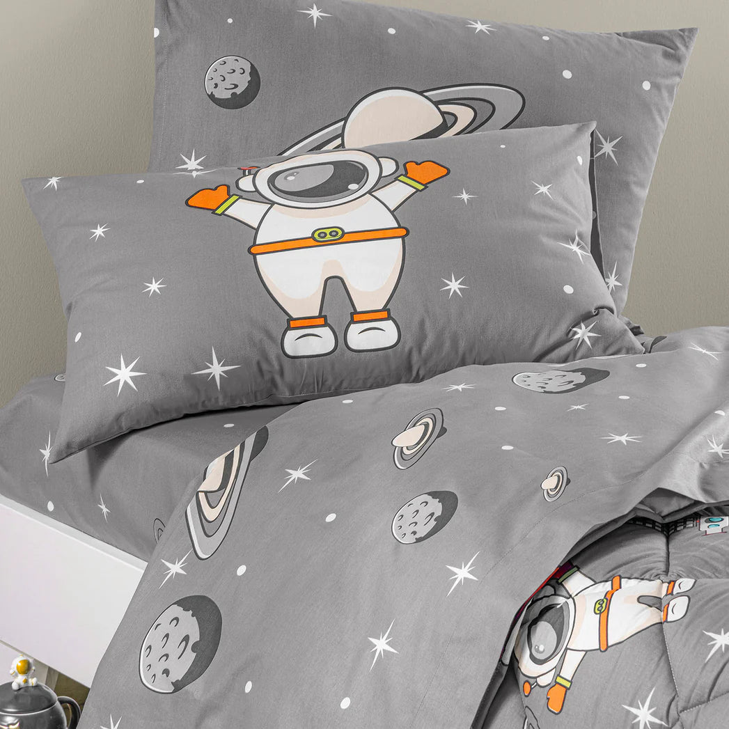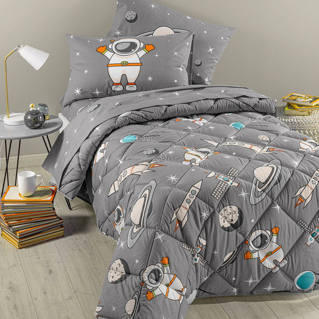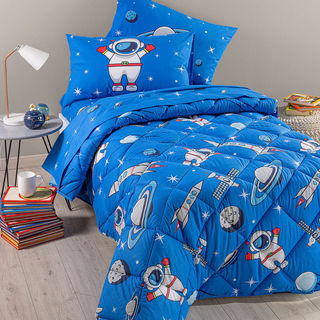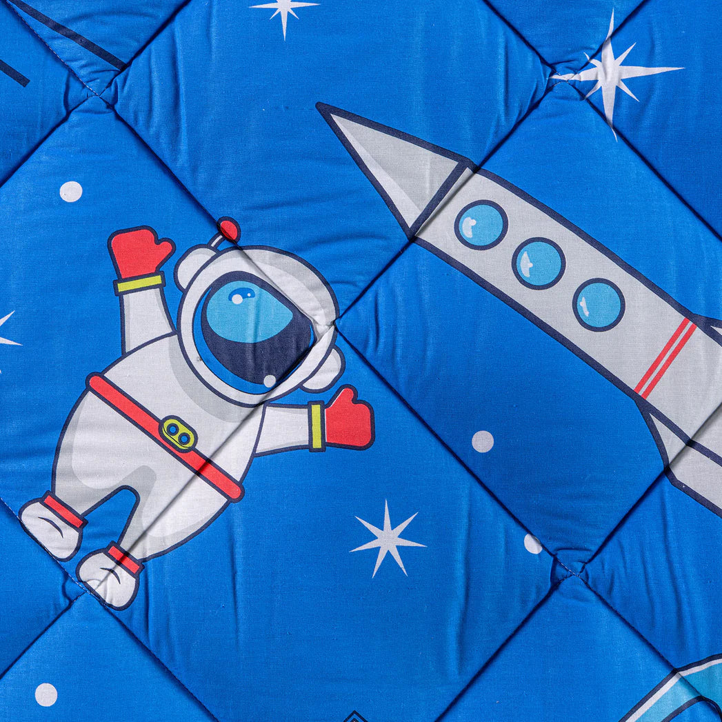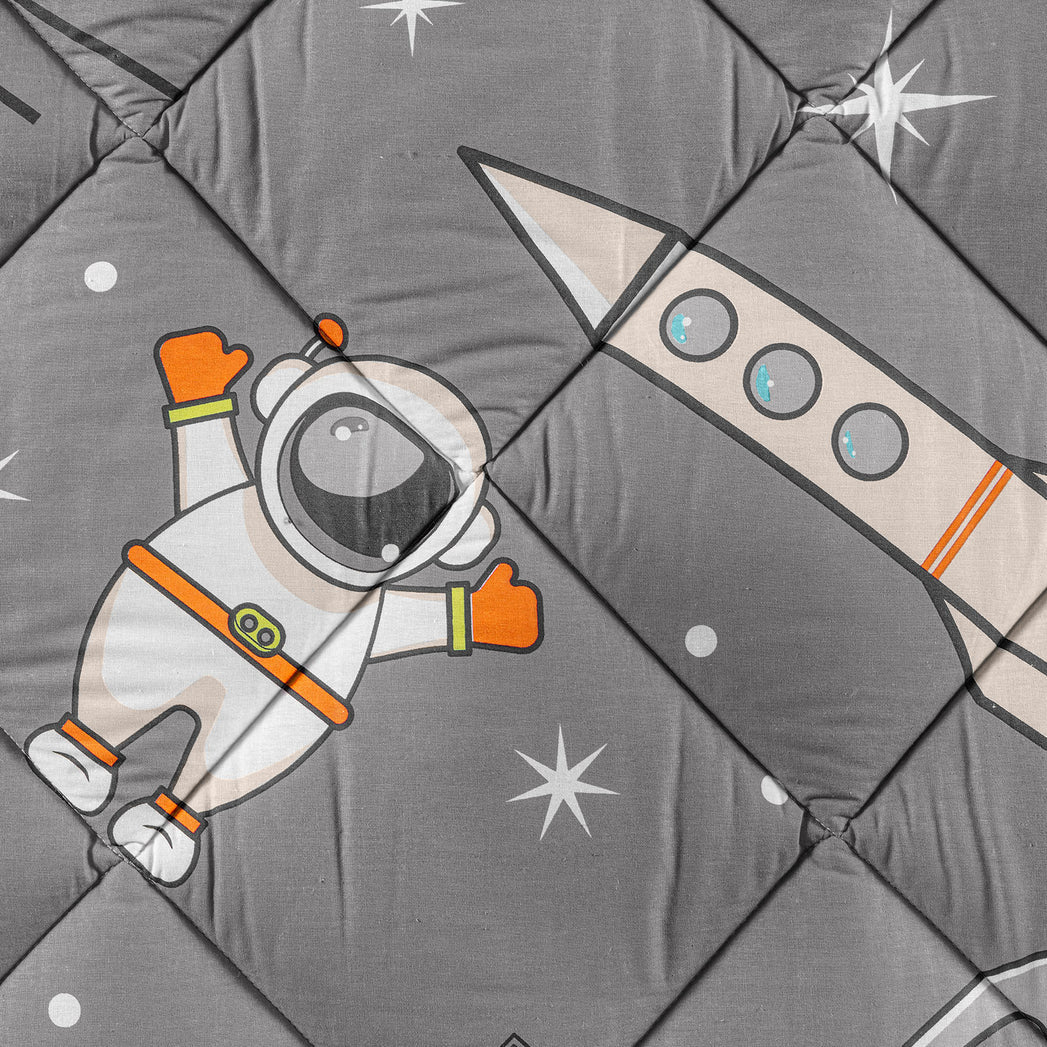 La Trapunta Caleffi Spazio è ideale per accompagnare i sogni dei più piccoli tra pianeti, stelle e simpatici astronauti. Realizzata in puro cotone con imbottitura in morbida microfibra anallergica, offre calore, comfort e leggerezza per un riposo sempre piacevole. La grammatura di 300 gr/mq assicura la giusta protezione durante le notti più fredde, con tutta la qualità della collezione Caleffi Kids.