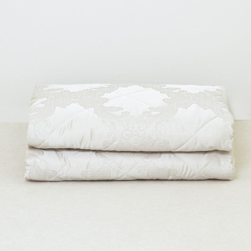 Trapuntino in tessuto raso operato manoseta. Realizzato artigianalmente e 100% Made in Italy.